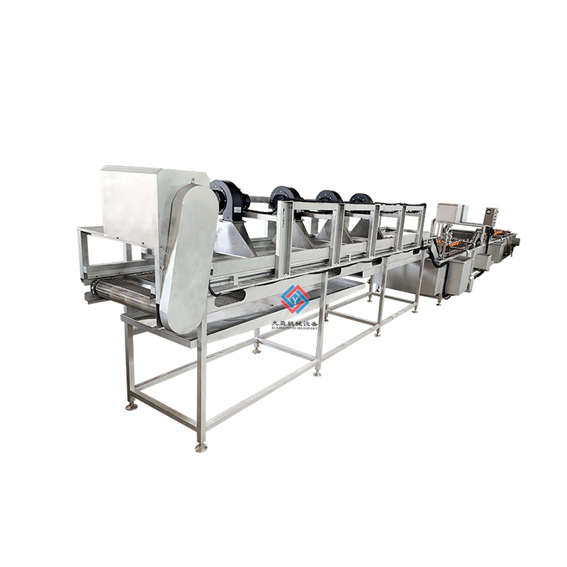 蔬菜清洗加工生产线/流水线是将蔬菜原料经过分级、清洗、切割、包装等一系列处理之后蔬菜可以直接进行烹饪的新鲜蔬菜产品,它和速冻的蔬菜相比,虽然保存的食品较短,但是能够保持蔬菜本身的新鲜和营养价值,无需冷冻和解冻,具有食用方便、生产成本低的优点,随着生活节奏的加快,鲜切的蔬菜具有方便、营养等特点,深受人们的喜爱。
