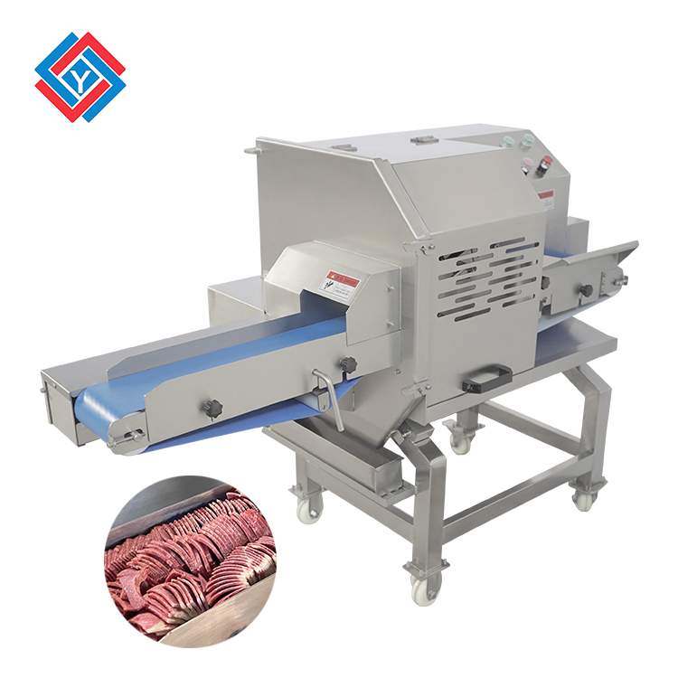 切熟肉片机能够将不带骨头的肉类,例如扣肉、五花肉、牛扒、熟肉等肉类切成片状或者块状,也可以用于蔬菜瓜果和各种豆制品的切丝、切片、切条工作,通过输送带可以整齐输出,方便用户进行摆盘或者包装。